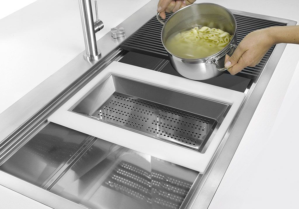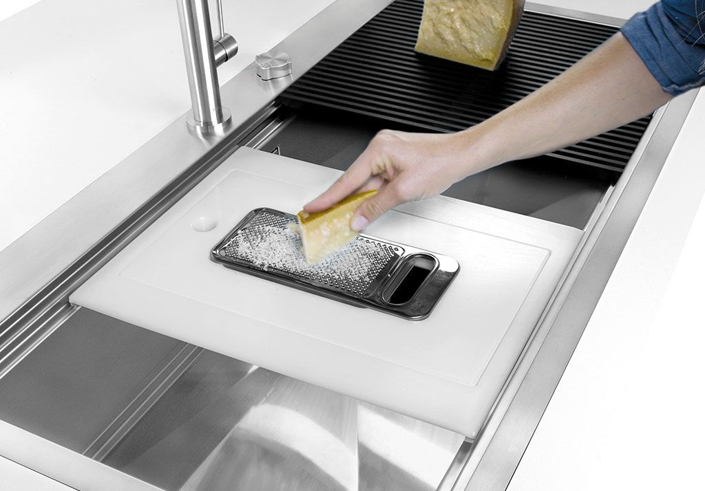 O segundo nível é projetado para suportar e deslizar uma combinação completa de acessórios que tornam cada operação confortável, segura e prática: enxaguar, drenar, cortar ou ralar nunca foi tão confortável e o melhor ... sempre dentro do lava-loiças.