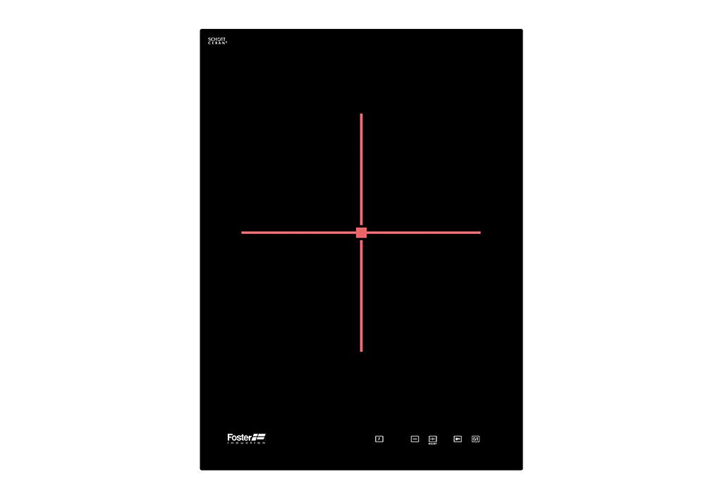 Placa dominó de 38 cm com 1 zona de indução de 3000 W de potência.